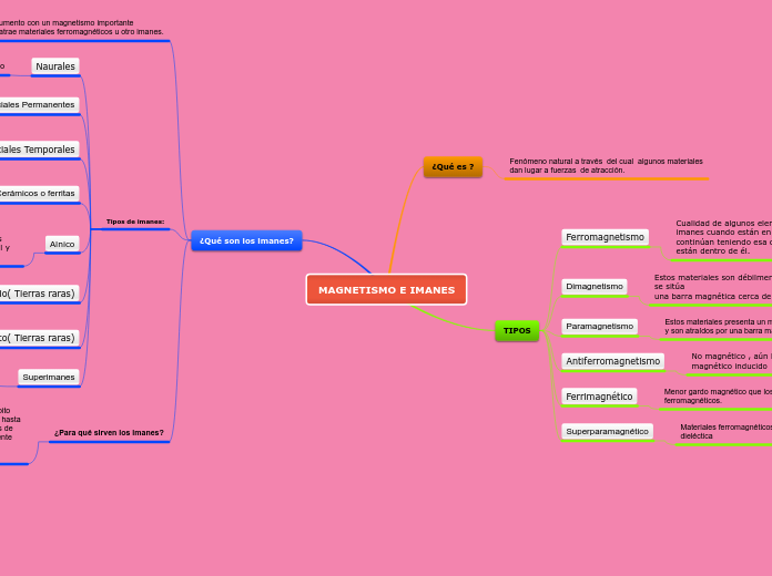 Su atracción es mejor en los extremos disminuyendo hasta llegar al punto medio del imán en que la atracción es nula. By admin 10 noviembre 2017. Tipos de imanes - Mapa Mental.