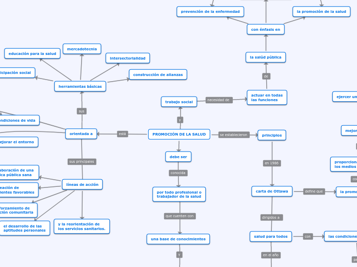 PROMOCIÓN DE LA SALUD. CARTA DE OTTAWA - Mapa Mental. La promoción de la salud consiste en proporcionar a los pueblos los medios necesarios para mejorar su salud.