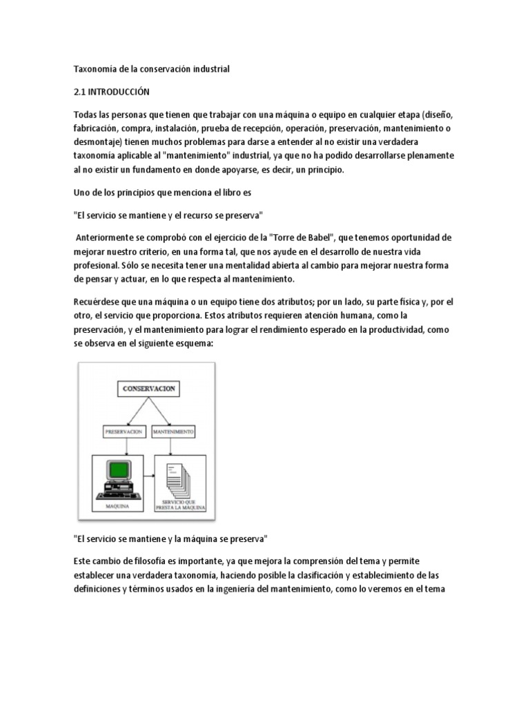 Taxonomia De La Conservacion Industrial Resumen Pdf Taxonomia Biologia Ingenieria De Confiabilidad