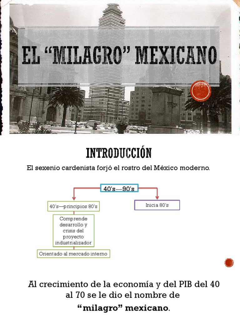 EL MILAGRO MEXICANO El Milagro mexicano también conocido como Desarrollo Estabilizador fue una etapa que tuvo lugar desde 1940 hasta 1970 y se caracterizó por tener un crecimiento sostenido de un 5 anualLos presidentes que gobernaron en esta etapa fueron. Ademas de que la relación con los inversionistas estaba seriamente dañada tras la nacionalización de los bancos. Las bases de este modelo radican en buscar la estabilidad económica para lograr un desarrollo económico continuo la estabilidad económica se refiere a mantener la economía libre de topes como inflación déficit en la balanza de pagos devaluaciones y demás variables que.