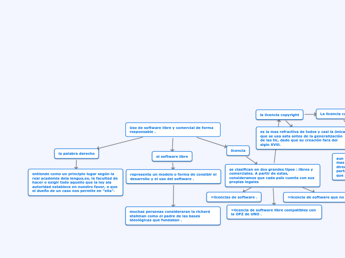 El Software Comercial o propietario es aquel que tiene un dueño y su uso se permite mediante una licencia comercial y en la mayoría de las veces pagada. El uso del software libre tiene varias ventajas y desventajas que deben de ser puestas en consideración antes de utilizarlo esto dependiendo de las necesidades particulares de cada usuario ya que como en el caso de algunos sistemas operativos y otros programas pertenecientes al software libre y como los usuarios pueden realizar modificaciones al. Uso responsable de software libre y comercial Mind Map by deivin villaverde updated more than 1 year ago More Less Created by deivin villaverde about 2 years ago 546 0 0 Description.